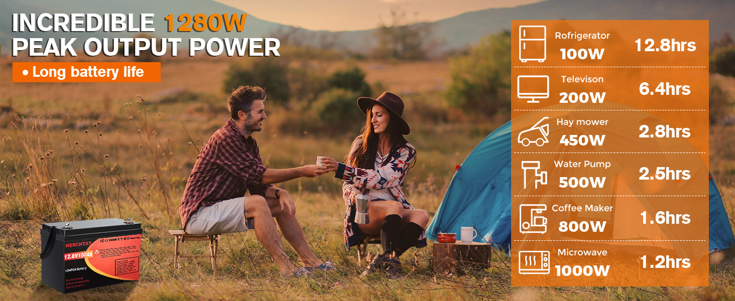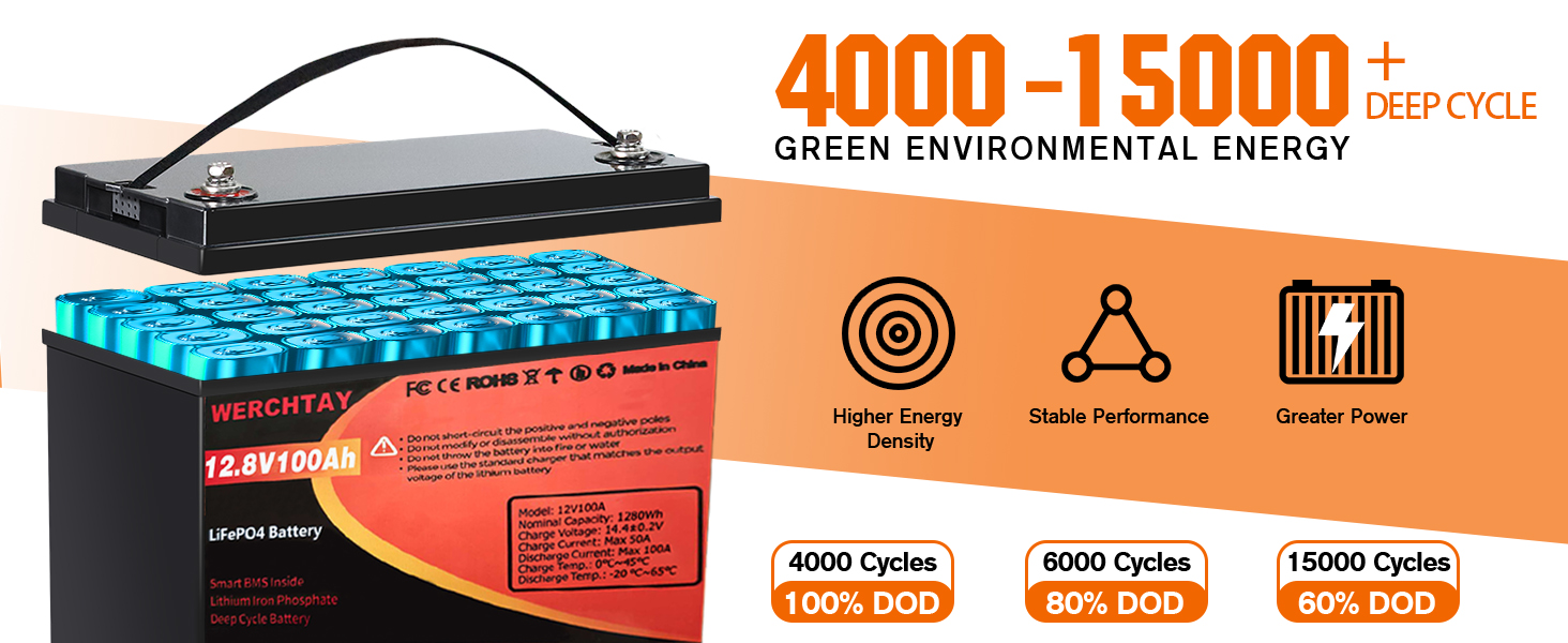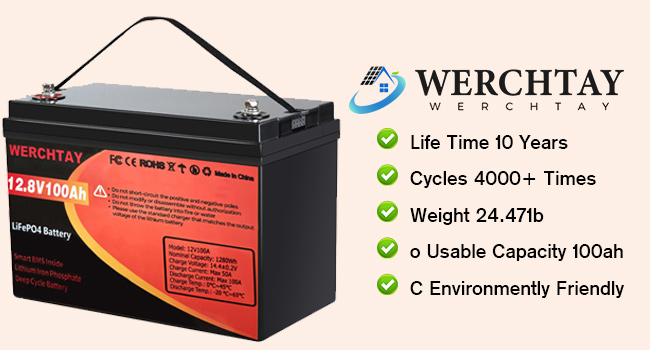 【Long Life & Deep Cycle】WERCHTAY Lithium Iron Phosphate (LiFePO4) battery can be recycled up to 4900~15000 times and provide up to 10 years of service life. Because of its safety and stability, LiFePO4 battery can perfectly replace the traditional lead acid battery. This model uses prismatic LiFePO4 cells with better stability, higher energy density, and lighter weight, making the batteries good enough at high temperature performance, high power output, low self-discharge rate.