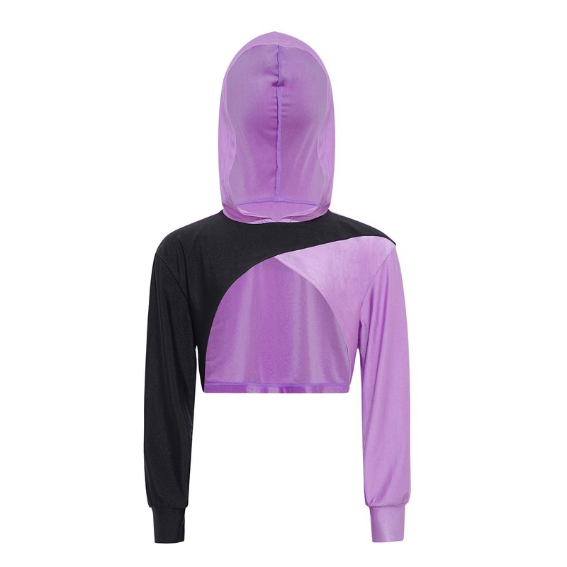 The long-sleeve hooded crop top style is both stylish and practical, suitable for layering over other tops and showing off a bit of skin in a fashionable way.
