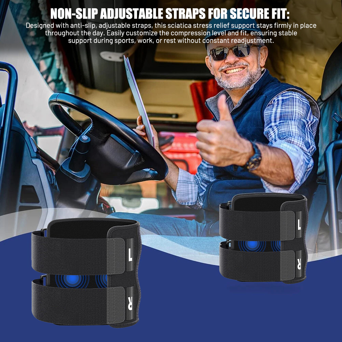 3. Non-Slip Adjustable Straps for Secure Fit: Designed with anti-slip, adjustable straps, this sciatica stress relief support stays firmly in place throughout the day. Easily customize the compression level and fit, ensuring stable support during sports, work, or rest without constant readjustment.