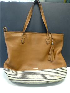Rebecca Minkoff Women's Brown Tassel Pebbled Leather Shoulder Bag Tote Woven