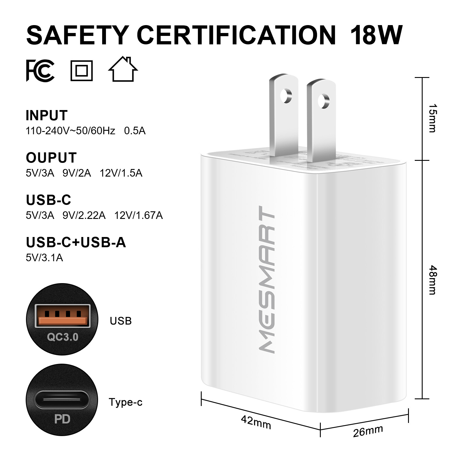 • USB-A+USB-C(QC3.0+PD):5V-3A