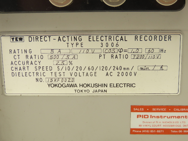 Yokogawa Type 3006 Direct Acting Electrical Chart Recorder 110VAC KFD-100 Yokogawa