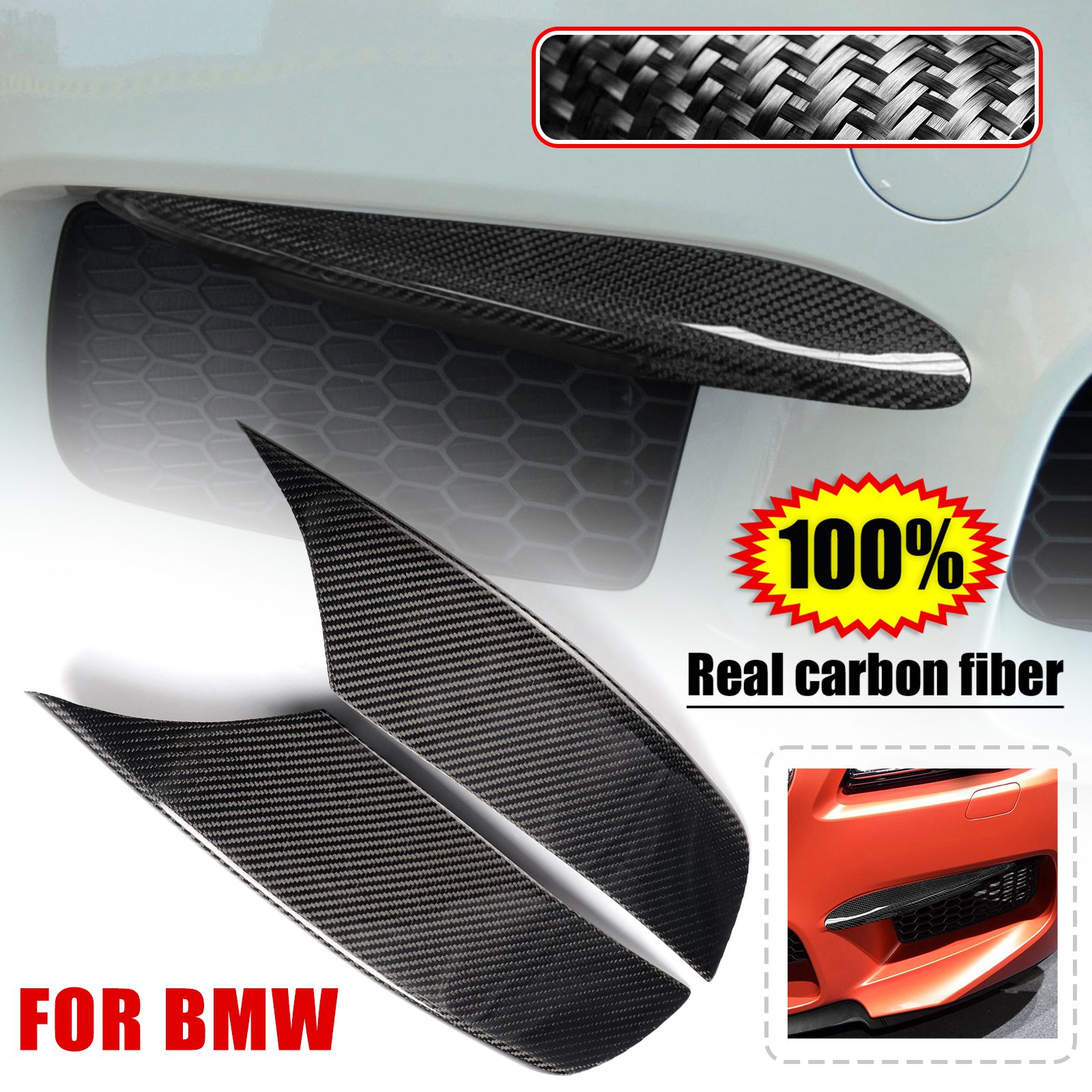 2PCS Carbon Fiber Front Bumper EyeLid Covers