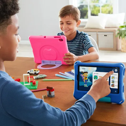 A tablet just for them we've made this 10.1" Kids' Tablet more kid-centric, with kid-friendly apps preloaded and a crystal-clear display, plus up to 17 hours of battery life. They can easily surf, work, socialize, play games, or even stream content from the web. This table runs on the Android 14 operating system, and has a familiar smartphone-like feel, but with an added kick of all your surfing needs. Surf onn.