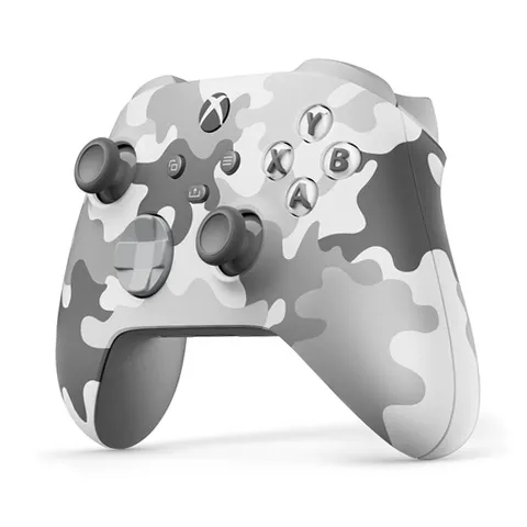 Experience the Xbox Wireless Controller - Arctic Camo Special Edition, featuring a rugged white and camouflage pattern. Enjoy modern sculpted surfaces and refined geometry for enhanced comfort during gameplay. Stay on track with a hybrid D-pad and textured grip on the triggers, bumpers, and back case. Seamlessly capture and share content such as screenshots, recordings, and more with the Share button. Get up to 40 hours of battery life. Plug in any compatible headset with the 3.5mm audio jack. Use the Xbox Accessories app to remap buttons and create custom controller profiles for your favorite games. Quickly pair with, play on, and switch between devices including console, PC, and mobile.