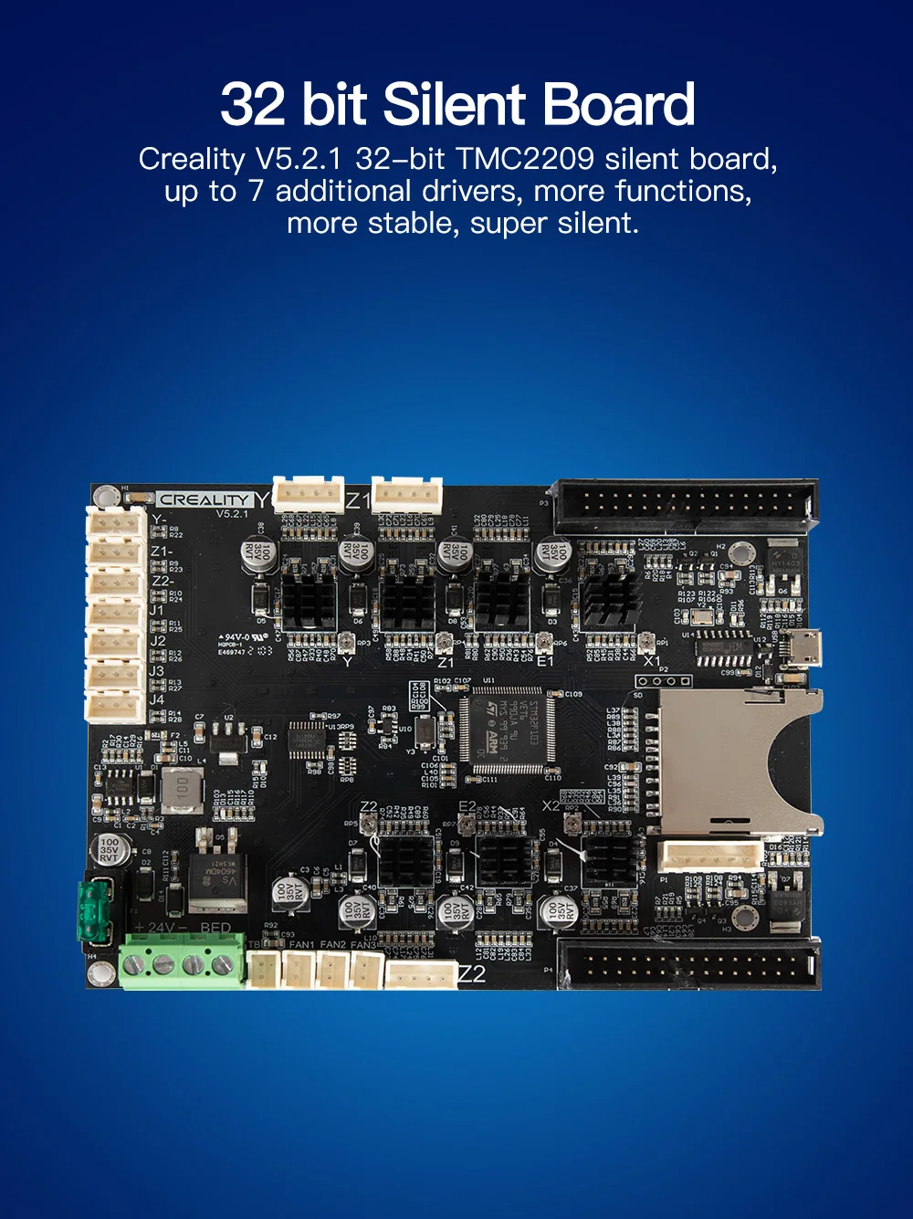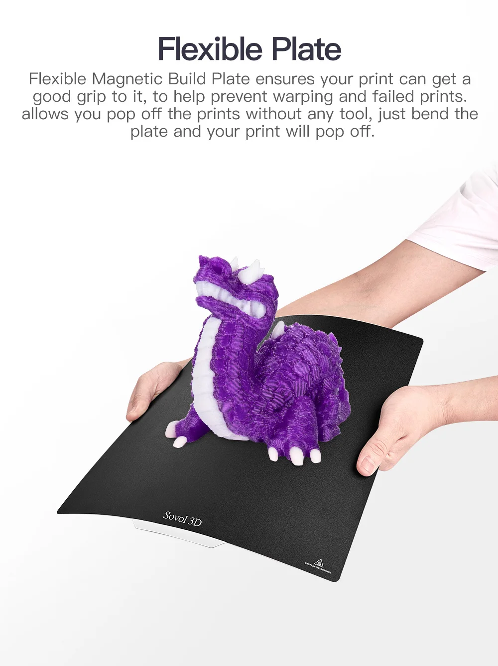 - Creality V5.2.1 32 bit TMC2209 silent board, up to 7 additional drivers, more functions, more stable, super silent. Flexible magnetic build plate ensures your print get a good grip to it, to help prevent warping and failed prints. It allows you pop off the prints without any tool, just bend the plate and your prints removed.