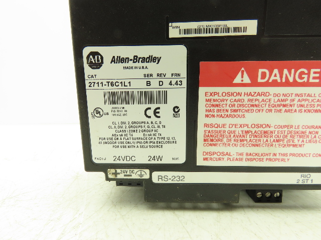 Allen Bradley 2711T6C1L1 PanelView 600 Touch Screen PLC HMI Ser B Rev D Frn 4.43 Allen Bradley