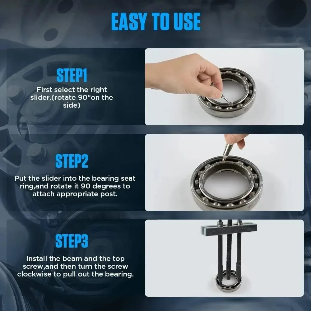 • Small Insert Bearing Puller Kit :The kit includes small insert bearing pullers, which are designed to remove bearing races without causing damage to the bearing itself.
