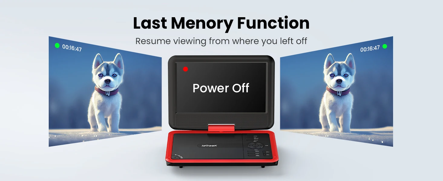 👨👩👧 Sonorous and Loud Volume ---- ieGeek portable DVD players equipped with two high-power speakers, which makes the volume louder and clearer. Not enough? There is a 3.5mm earphone jack on the right side of the player so that you can get a concentrated and clear sound.
