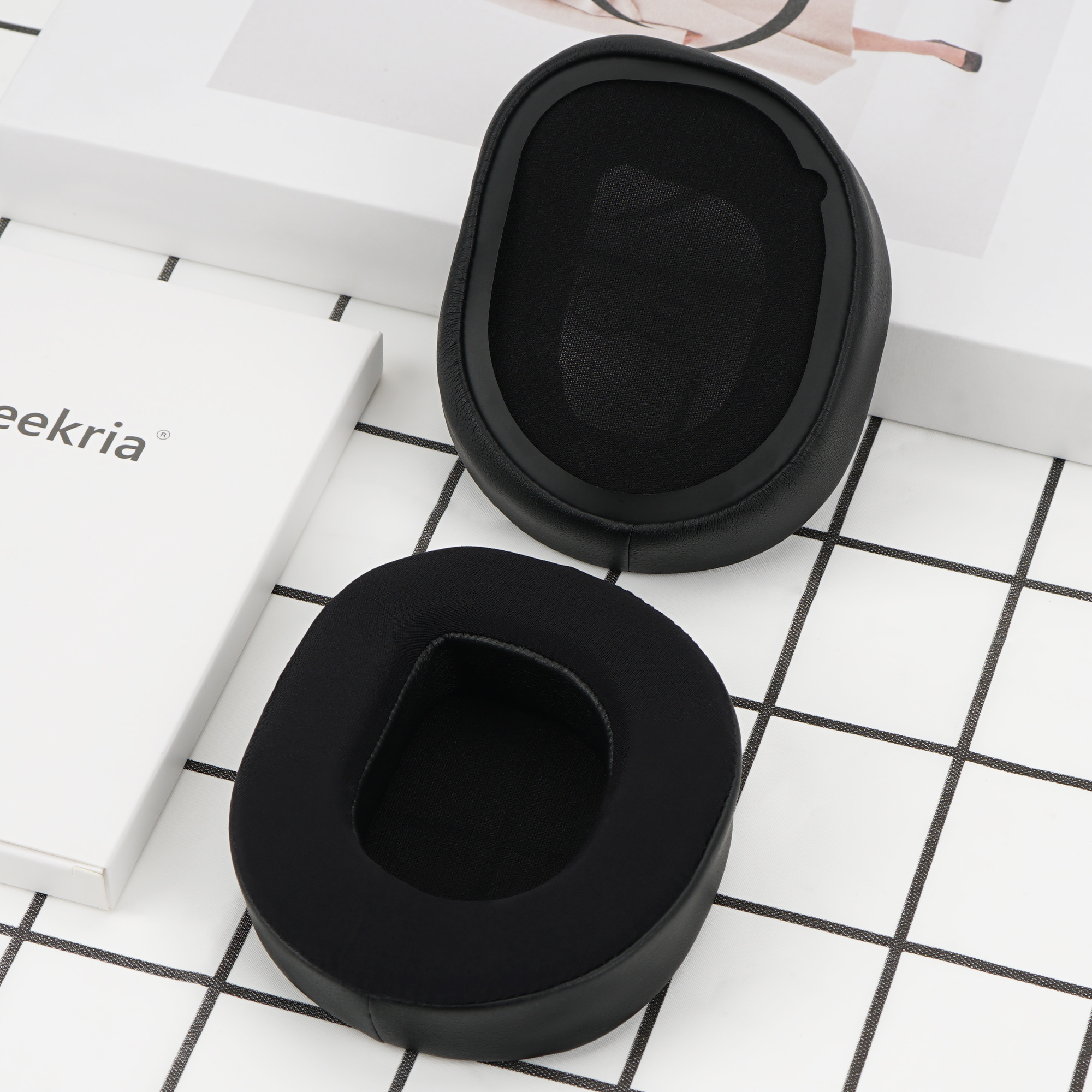 - One set of ear cushions. Made by Geekria.