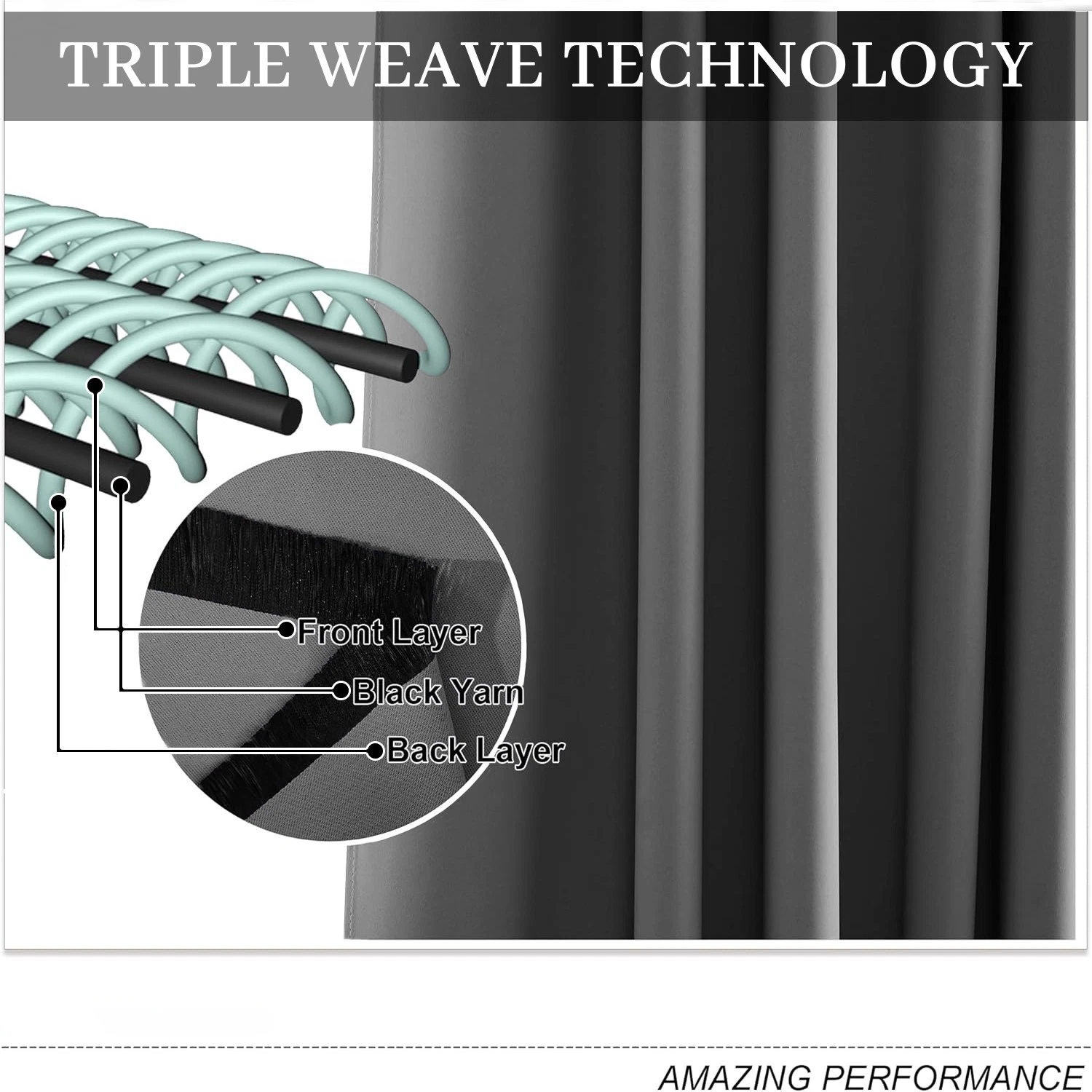 Blackout Curtains are soft and durable curtains that feature: high performance effects on room darkening, thermal insulation, noise reduction, energy saving / efficiency, and privacy protection.