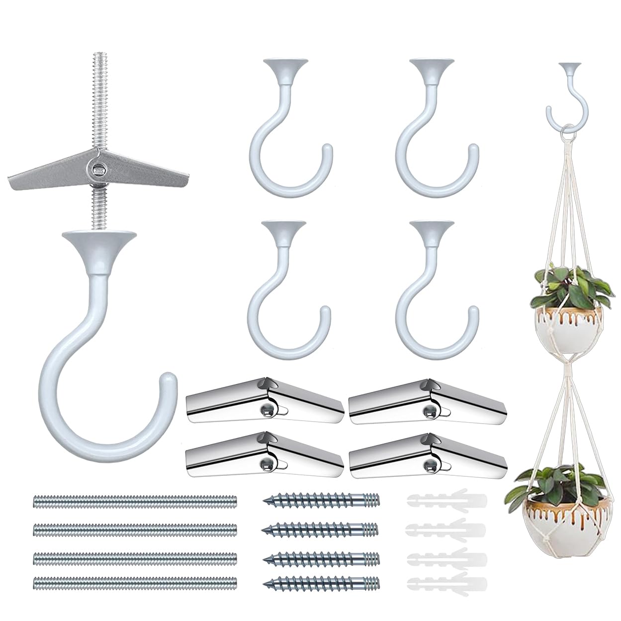 4 Sets Heavy Duty Swag Ceiling Hooks with Hardware for Hanging Plants, Cavity Wall Fixing, Easy Installation, Holds Up to 30lbs, Ideal for Home & Garden (4 Sets, White)