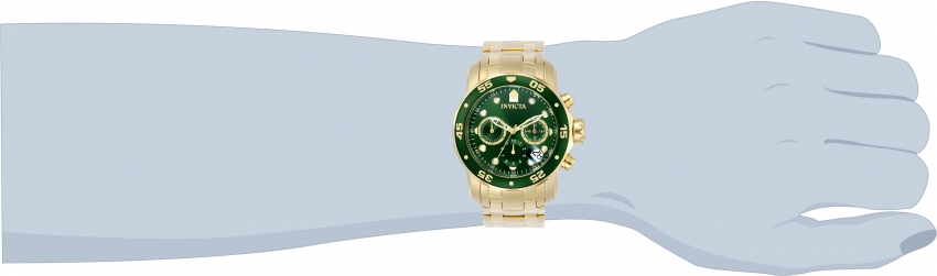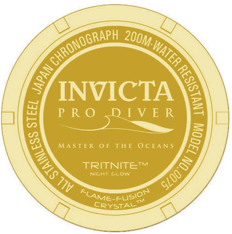 Classic chronograph styling with contemporary features, the Invicta Men's Pro Diver Chronograph 18k Gold-Plated Watch features a brushed and polished 18k gold-plated stainless steel case and a band that closes with a fold-over safety clasp. The stainless steel case provides an ideal foundation for this watch's rotating bezel with minute markers and its attractive blue dial. The dial has luminous hands and hour markers, and three subdials at the two, six, and 10 o'clock position. There's also a magnified date window at the four o'clock position to help you keep tabs on your busy schedule. For added style, Invicta included a large crown and two bold buttons on the right-hand side of the case. Other features include precise Swiss quartz movement, a durable flame-fusion crystal, and water resistance to 660 feet (200 meters).