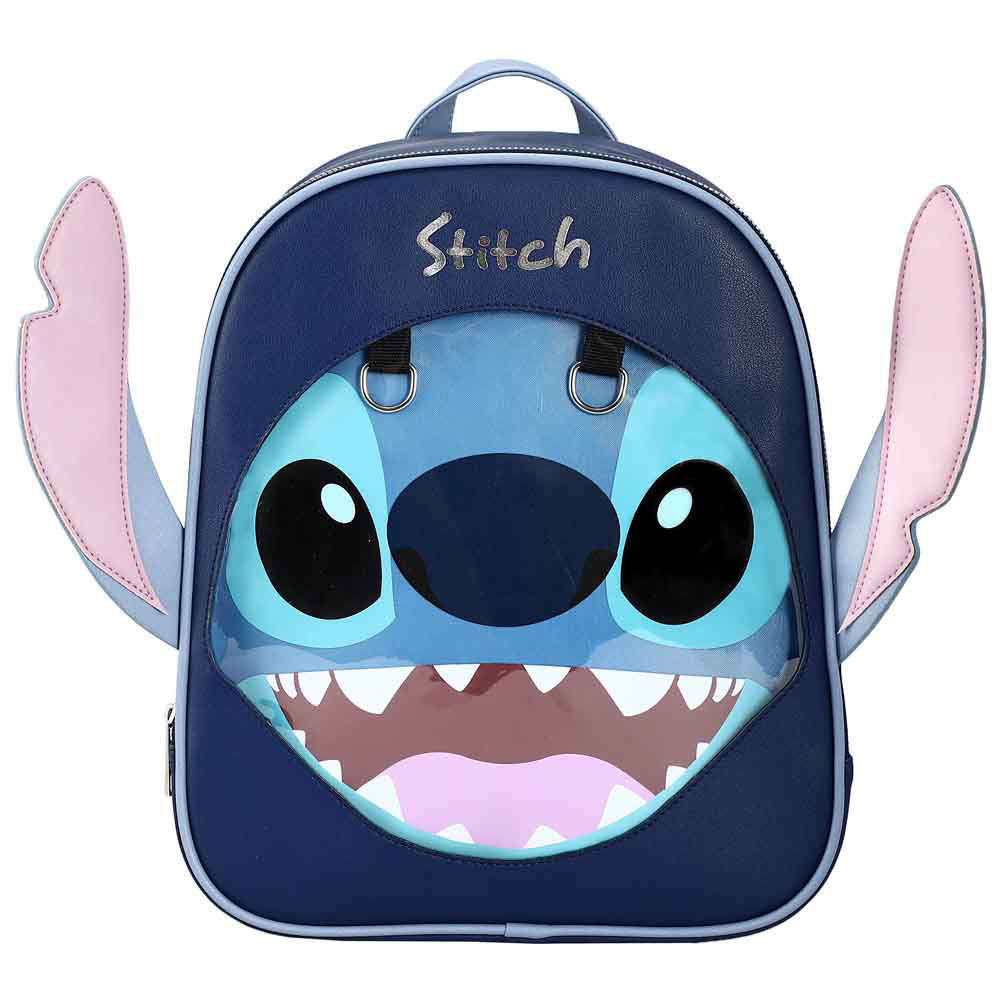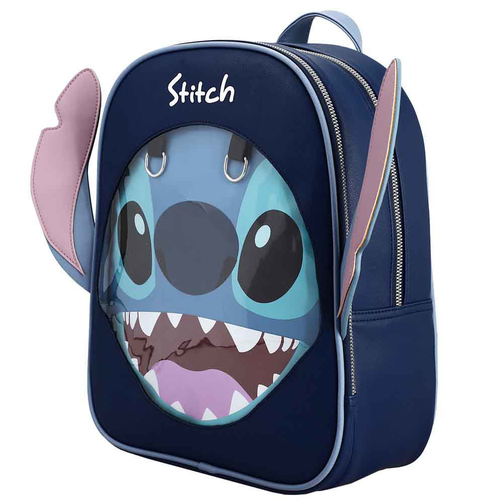 DISPLAY COMPARTMENTS - The Stitch ITA Mini Backpack with Removeable Scrump Pin includes a clear PVC pocket and insert on the front to display your collection of Disney push pins!
