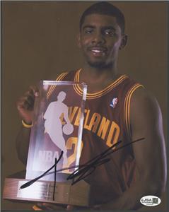 Hey there, up for auction is a 8x10 photo signed by Kyrie Irving. The autograph is certified authentic by JSA (CH62920) and includes a sticker on the lower corner and matching paper certificate card. Note there is a tiny 1/4" bend indentation on the top center edge. Please see scan below for more information about the item. If you have any questions or concerns, please contact me.