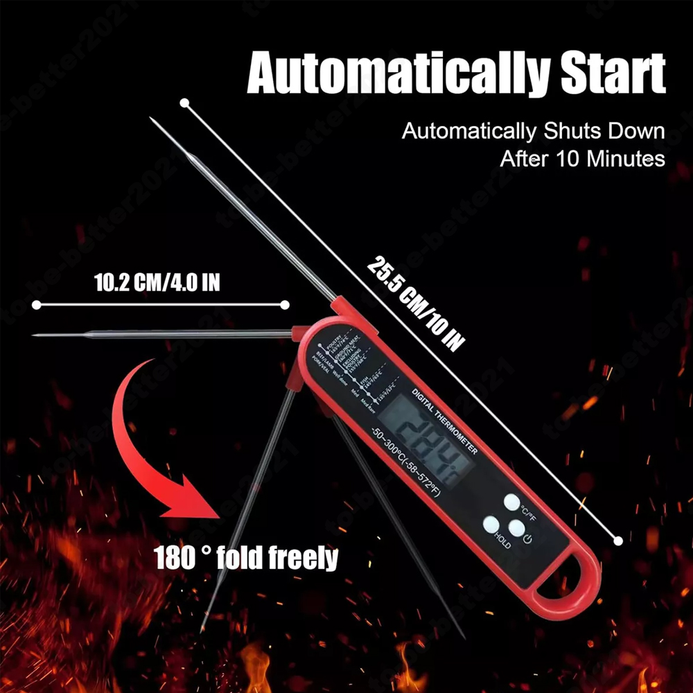 Instant Read meat thermometer, equipped with a temperature probe, employs a precision sensor that reads temperatures