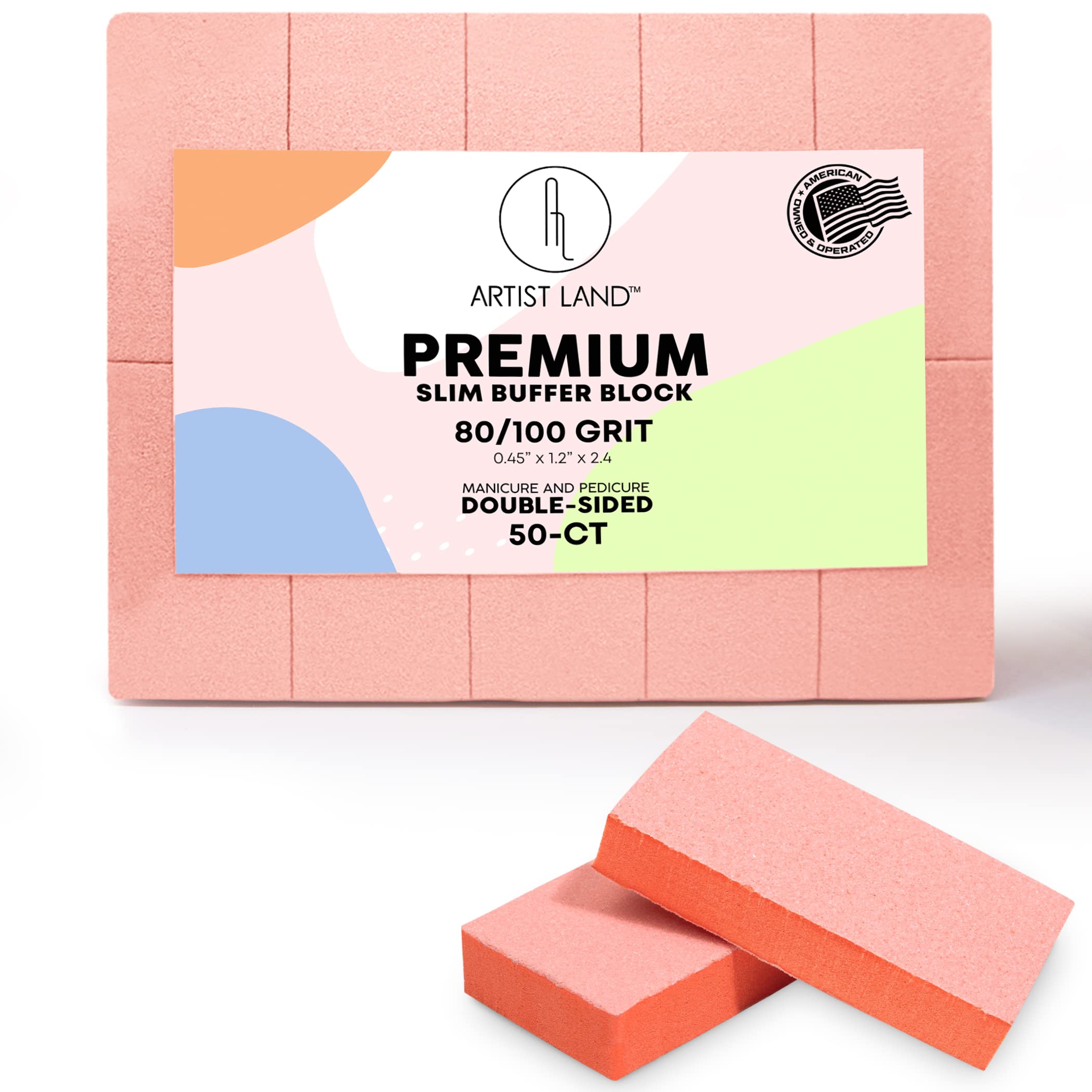 Our slim nail buffer set makes no exception. Made with premium materials, 80/100 grit nail buffers are suitable for prepping the nail before any type of polish application. Whether you prefer classic nail polish, gel polish, building gel, or acrylic enhancements, our buffer blocks for nails are the right solution for nail prepping!