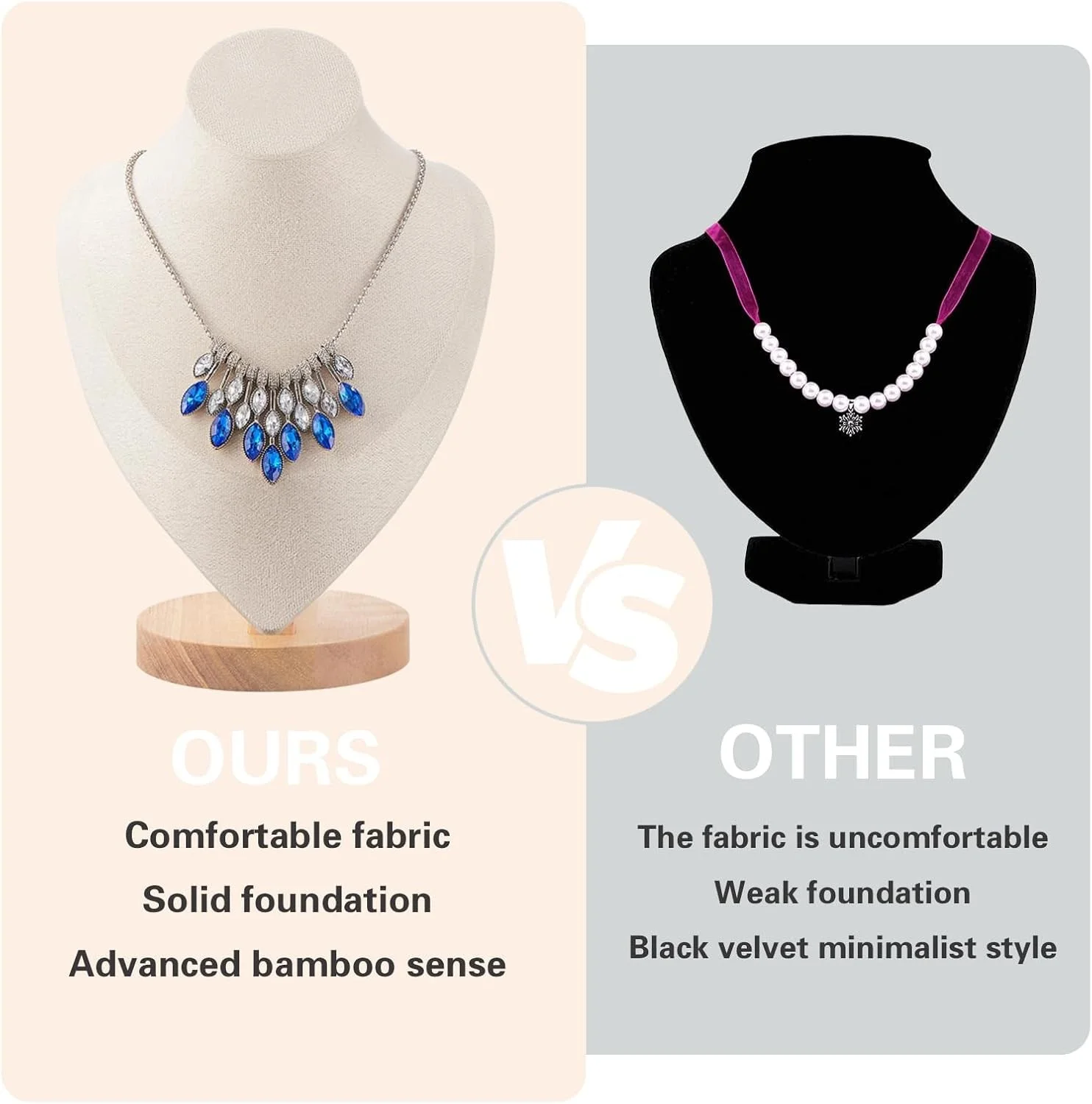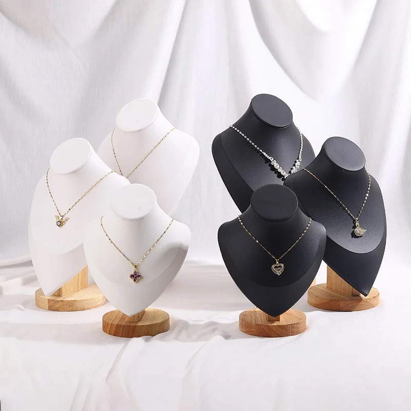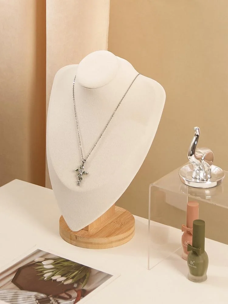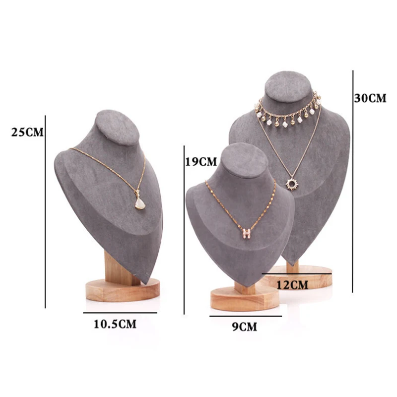 Solid Wooden Velvet Necklace Display Stand Jewelry Holder Organizer for Home Store Window Display Mannequin Bust Rack