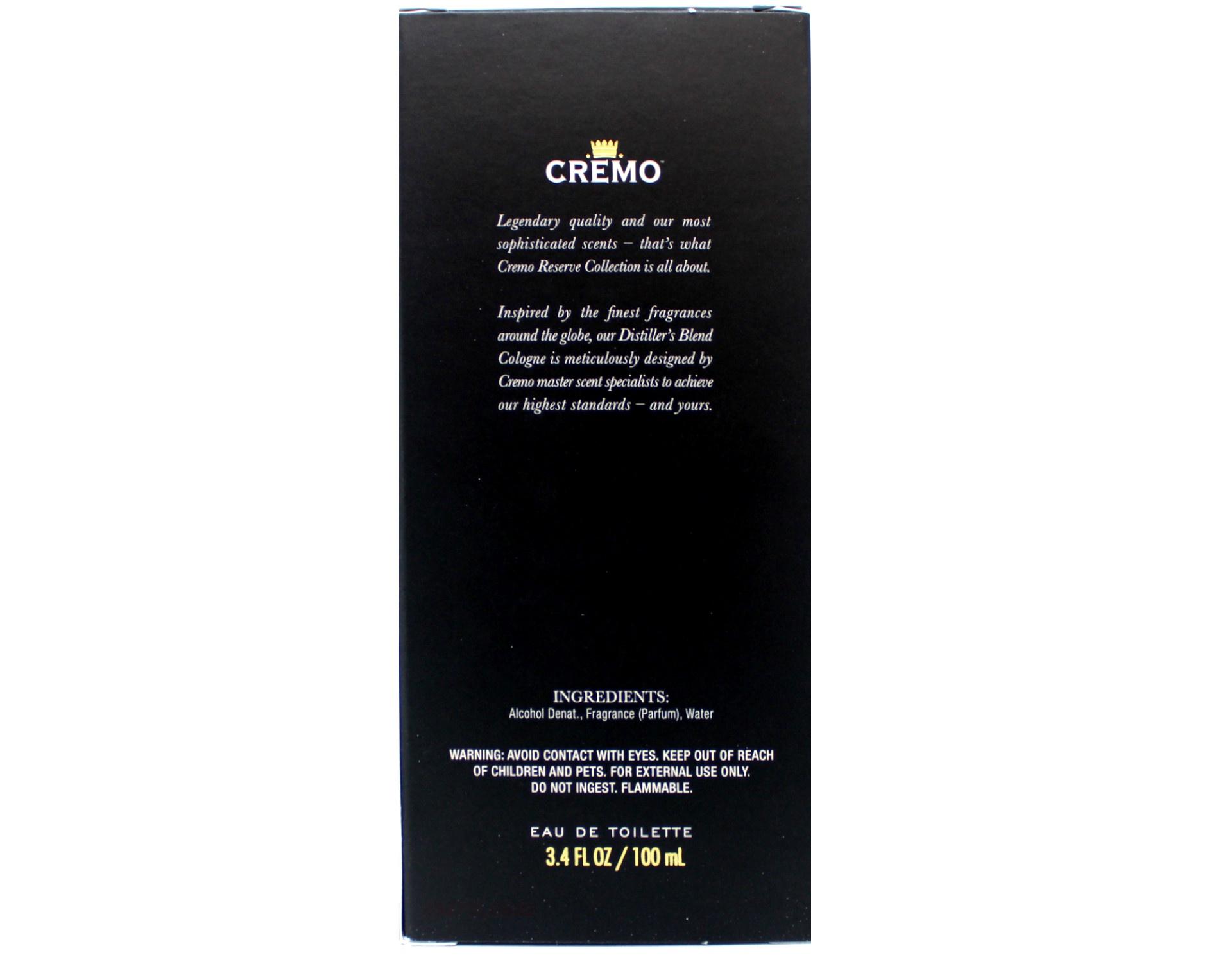 Legendary quality and our most sophisticated scents - that's what Cremo Reserve collection is all about. Inspired by the finest fragrances around the globe, our distiller's blend Cologne is meticulously designed by Cremo Master scent specialists to achieve our highest standards - and yours. A FRAGRANCE FOR TODAY'S MAN - A rich, elevated blend with notes of Kentucky bourbon, smoked vetiver, and American oak in a luxurious cologne for men QUALITY - Thoughtfully designed to perfection by our team of world-class scent experts and produced using only the finest ingredients GOOD UNCOMMON SCENTS - Our layered, long-lasting, and complex scents are a true sensory experience creating multiple levels of notes that provide a men's cologne unlike any other VALUE - A scent you’d expect to find in a high-end boutique without going to a high-end boutique TRAVEL - At 3.4 fluid ounces, this mens cologne is considered TSA compliant and can safely pass the carry-on baggage screening process