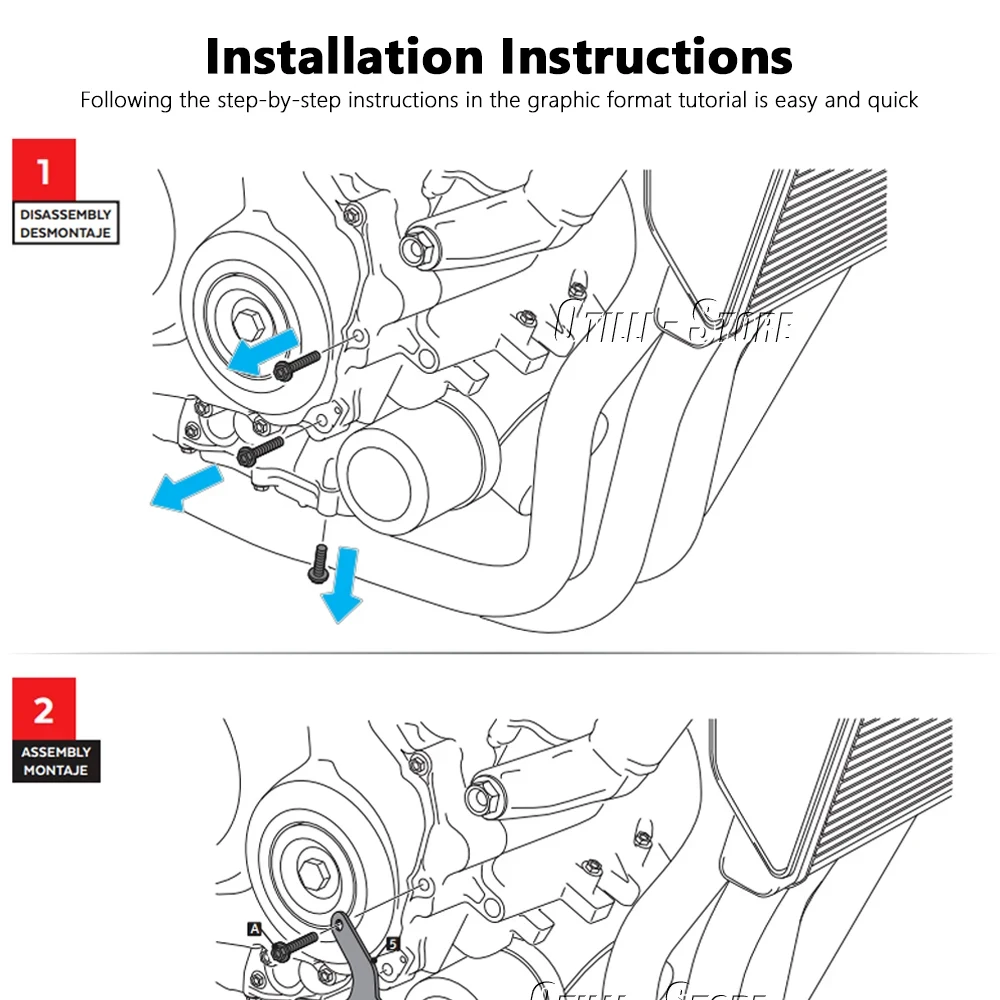 · Use an engine spoiler to protect one of the most sensitive parts of your motorcycle.