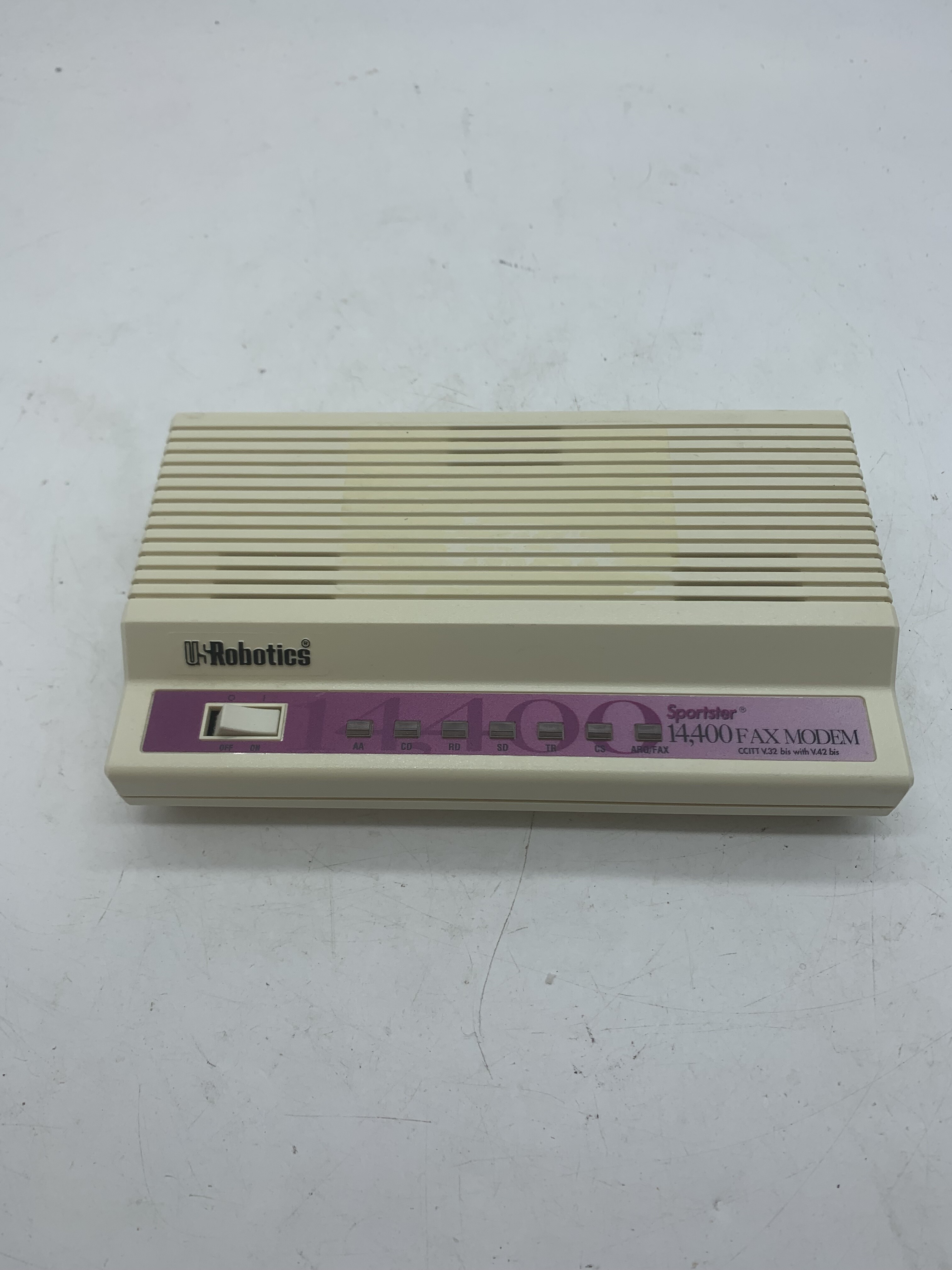 The US Robotics Sportster 14,400 Fax Modem combines reliable fax transmission and seamless data connectivity, designed for efficient communication needs. Known for its dependable performance, this modem supports high-speed data transfer and robust error correction, making it an excellent choice for home or small office use.