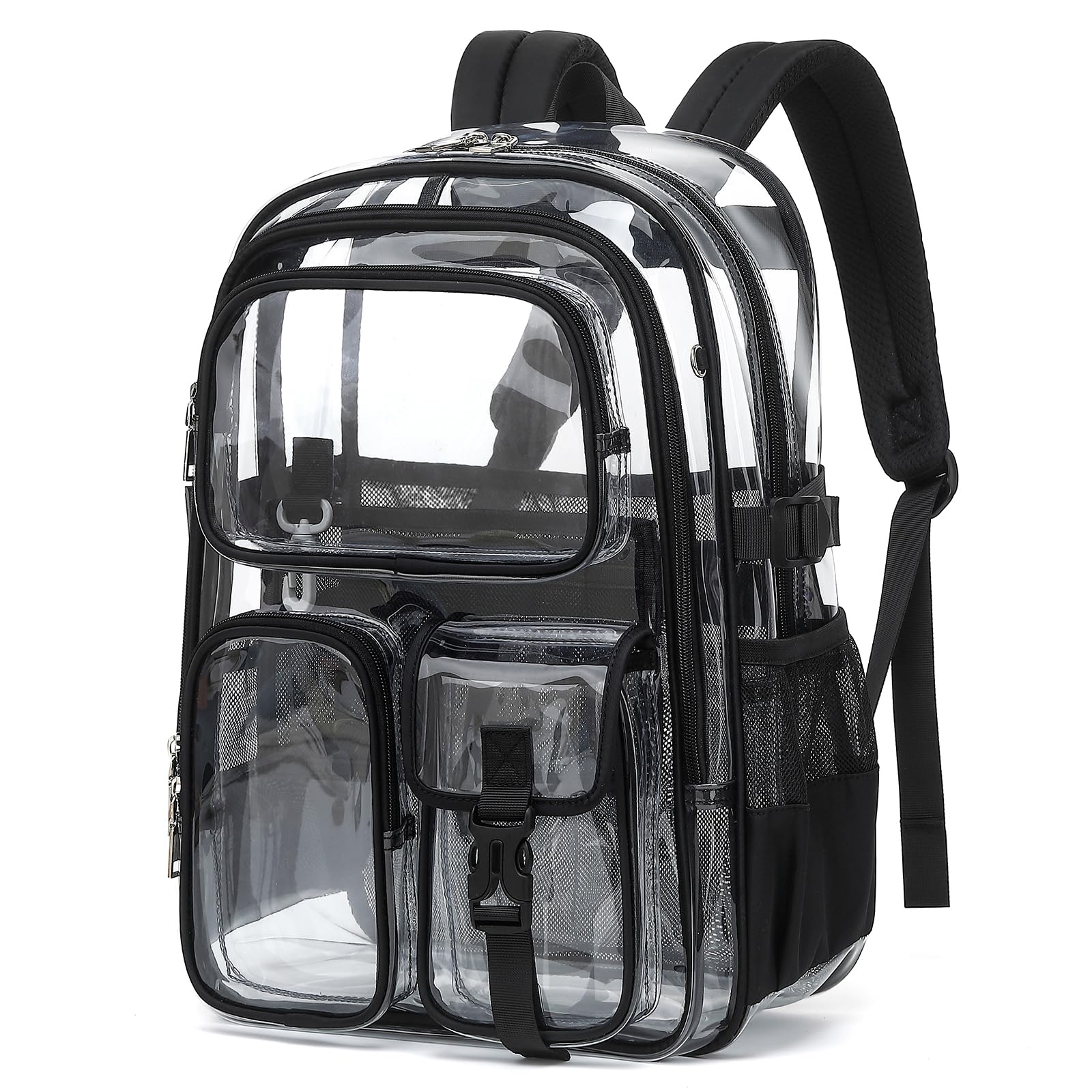 - HIGH QUALITY MATERIALS: Say goodbye to the problem of cheap PVC backpacks opening. Our thickened TPU heavy duty clear backpack has a lifespan 3X longer than inferior PVC. It’s anti-scratch, crack-resistant, and anti-yellowing. Easy to clean and quick drying, your textbooks stay protected