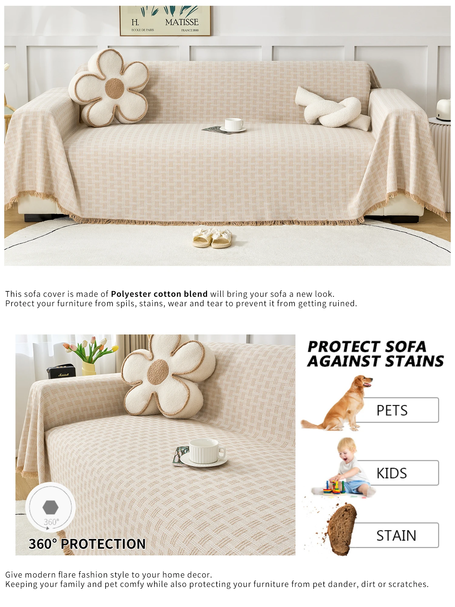 【Durable】: High quality fabric woven, fade/shrink/wrinkle/pill resistant, carefully woven to ensure softness, rich texture and durability, make your chair couch sofa into a scratch / pets claw friendly furniture