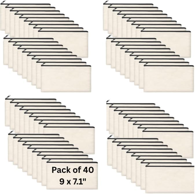 Effortlessly organize your items with water-resistant zipper pouch bulk for peace of mind. Double-sided blank blank pencil pouch practical for applying heat transfer vinyl, paint, embroidery, and various crafts. Heat-resistant and tear-resistant for ultra-durability—supported by nearly double the thickness of ordinary blank canvas pouch. Our canvas zipper pouch bulk is machine washable for quick and easy cleaning for added convenience. Simplify life-The natural cotton canvas zippered pouches provide easy access to objects so you can spend less time searching for important stuff and more doing it.