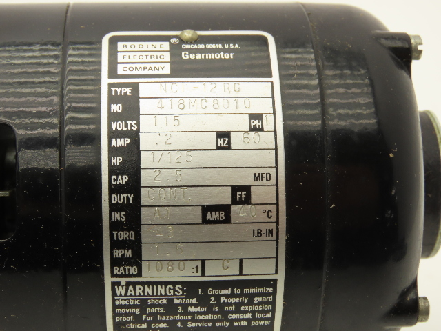 Bodine Electric NCI-12RG AC Gearmotor 115V 1080:1 60Hz 1/2" Shaft RH Output Bodine Electric