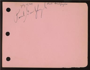 Hey there, up for auction is a album page signed by Paul Guilfoyle on one side and Marie Wilson on the reverse. The album page measures approximately 3 3/4" x 4 3/4". This is from a 1936 and 1937 autograph collection from a young lady named Rita who collected signatures in person. As with any autograph I sell, this is guaranteed to pass PSA/DNA, JSA, or BAS authentication or your money back. If you have any questions or concerns, please contact me.