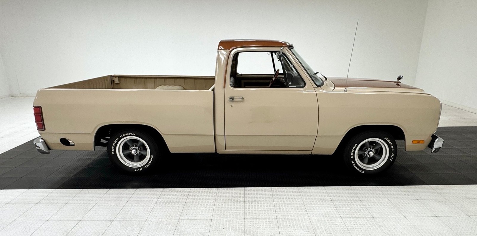 For consignment, a 1984 Dodge D100 short bed pickup showing 76,811 miles, but the true miles are unknown. Born with a slant six, this baby now houses a 318ci V8 with a 4-barrel and hunkers down over Torque Thrust wheels.