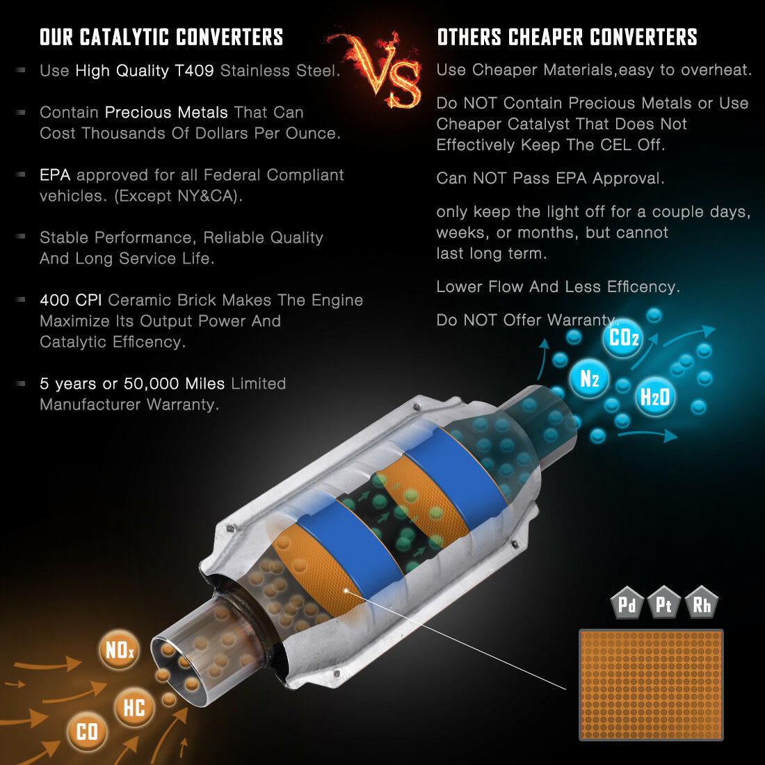 This is a Federal (EPA) compliant part, legal for use on vehicles built to meet Federal EPA standards ONLY.