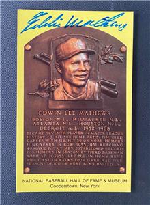 Hey there, up for auction is a Eddie Mathews signed gold HOF plaque postcard. As with any autograph I sell, this item is guaranteed to pass PSA/DNA , BAS, or JSA authentication or your money back. Please see scan below for more information about the item. If you have any questions or concerns, please contact me.