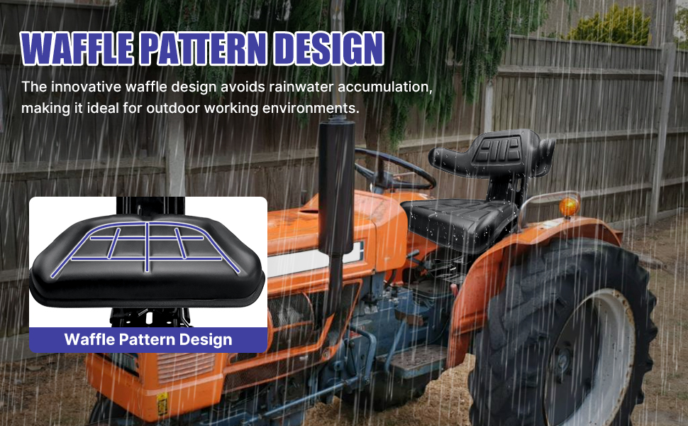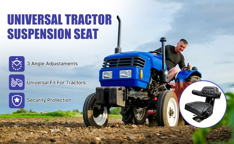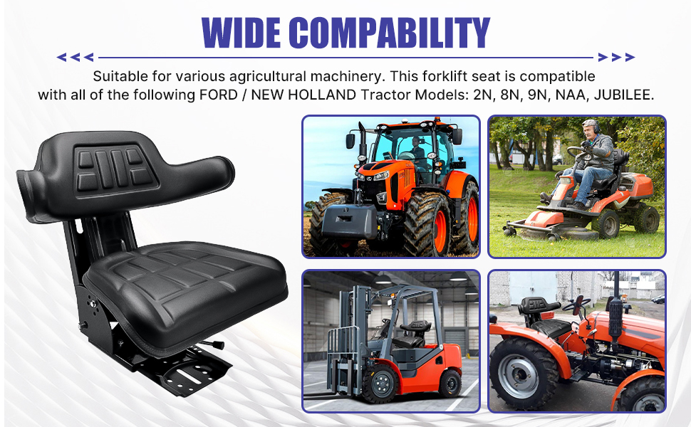 >>>- This universal tractor forklift seat is made of PVC material combined with a strong steel frame to load up to 400 lbs. It is water, abrasion, and heat resistant, increasing its life span,ideal for outdoor tasks like lawn care and gardening.