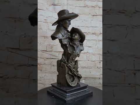 "Just Like Papa" by renowned artist Milo is a stunning sculpture that captures the essence of the western way of living. With a brown patina finish on a rich marble base, this piece exudes warmth and authenticity. Signed by the artist Milo, it bears testament to his skill and craftsmanship.
