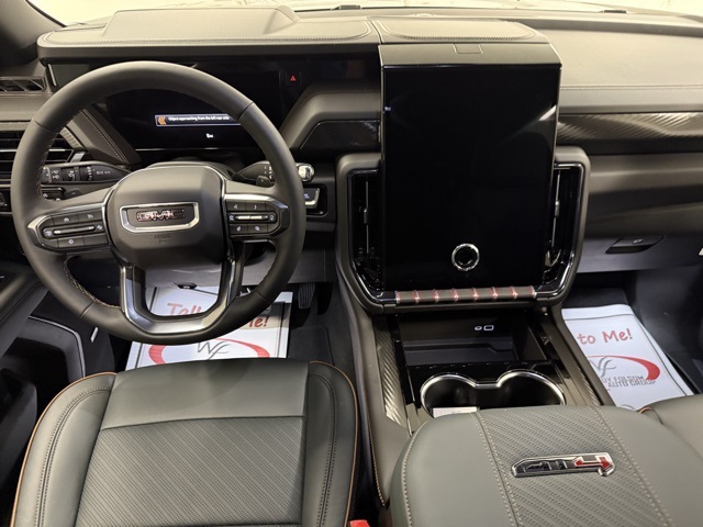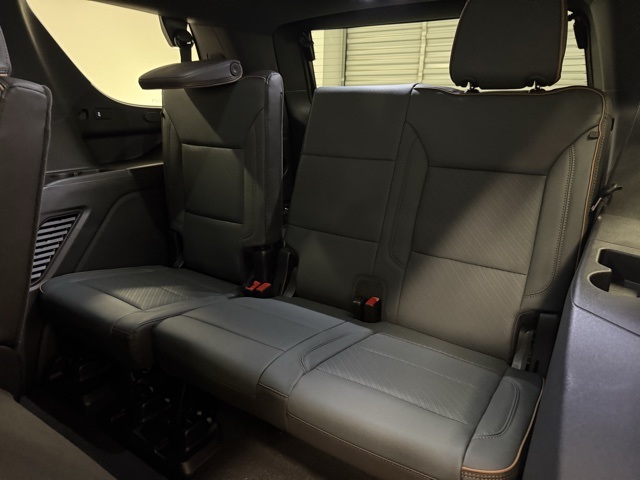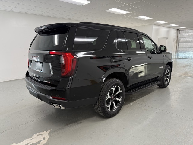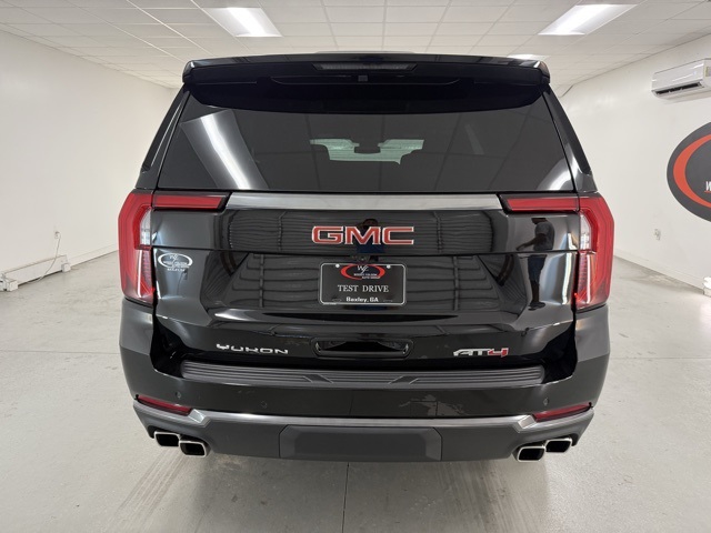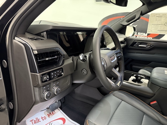 4WD, 10 Speakers, 3.23 Rear Axle Ratio, 3rd row seats: split-bench, 4-Way Power Driver Lumbar Seat Adjuster, 4-Way Power Front Passenger Lumbar Seat Adjuster, 4-Wheel Disc Brakes, ABS brakes, Adaptive suspension, Air Conditioning, Alloy wheels, AM/FM radio: SiriusXM with 360L, Apple CarPlay/Android Auto, Audio memory, Auto High-beam Headlights, Auto-dimming door mirrors, Auto-dimming Rear-View mirror, Auto-leveling suspension, Automatic temperature control, AutoSense Hands-Free Power Liftgate, Black Roof-Mounted Luggage Rack Side Rails, Body-Color Door Handles, Bose 10-Speaker Surround w/CenterPoint, Brake assist, Bright Front & Rear Door Sill Plates, Bumpers: body-color, Compass, Delay-off headlights, Driver door bin, Driver vanity mirror, Dual Exhaust System, Dual front impact airbags, Dual front side impact airbags, Electronic Stability Control, Emergency communication system: OnStar and GMC connected services capable, Exterior Parking Camera Rear, Four wheel independent suspension, Front anti-roll bar, Front Bucket Seats, Front Center Armrest, Front dual zone A/C, Front fog lights, Front High-Approach Angle Fascia, Front reading lights, Fully automatic headlights, Garage door transmitter, Heated door mirrors, Heated Driver & Front Passenger Seats, Heated front seats, Heated rear seats, Heated steering wheel, Heavy-Duty Air Filter, Hill Descent Control, Illuminated entry, Illuminated Front Black GMC Emblem (LPO), License Plate Front Mounting Package, Low tire pressure warning, Magnetic Ride Control Suspension, Memory seat, Navigation system: GMC Connected Navigation, Occupant sensing airbag, Outside temperature display, Overhead airbag, Overhead console, Panic alarm, Passenger door bin, Passenger vanity mirror, Perforated Heated & Ventilated Dr & Frt Pass Seats, Perforated Leather Seating Surfaces, Power door mirrors, Power driver seat, Power Liftgate, Power passenger seat, Power steering, Power Tilt & Telescopic Steering Column, Power windows, Preferred Equipment Group 4SB, Radio: 16.8" Diagonal Premium GMC Infotainment Sys, Rain sensing wipers, Rear air conditioning, Rear anti-roll bar, Rear reading lights, Rear seat center armrest, Rear window defroster, Rear window wiper, Red Horizontal-Mounted Recovery Hooks, Remote keyless entry, Security system, SiriusXM w/360L, Speed control, Speed-sensing steering, Split folding rear seat, Spoiler, Steering wheel memory, Steering wheel mounted audio controls, Tachometer, Telescoping steering wheel, Tilt steering wheel, Traction control, Trip computer, Turn signal indicator mirrors, Variably intermittent wipers, Ventilated front seats, Voltmeter, Wheels: 20" x 9" Machined & Painted, 4WD. 2025 GMC Yukon AT4 AT4