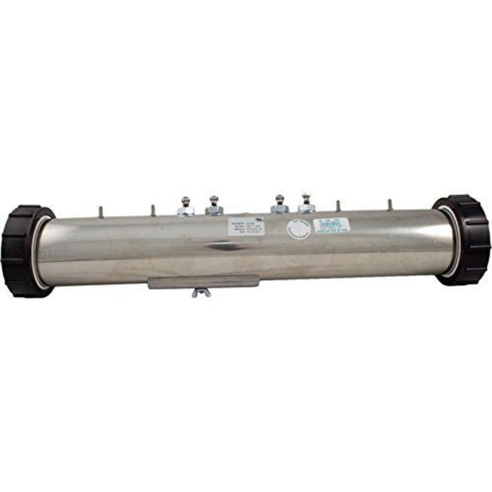 2 éléments sont utilisés, chacun est de 5,5 kW, chaque élément est un puits thermométrique externe, le côté opposé de l'élément conduit le tube mesure 19" de long et 3" de diamètre. Caractéristiques : Dimensions 11,0 kW, 240 V, utilise (2) éléments de 5,5 kW. Goujons filetés de 3-1/8", 5-1/2", 13-3/4", 16-1/4" (4), les distances depuis l'extrémité sont : 1/8" trou mpt pour pressostat : 9-5/8" de l'extrémité. (fil le plus proche, ajoutez 1-5/16" pour les autres) . Distance entre les câbles Puits thermométrique de 1-5/16" : ligne centrale à 7-1/2" de l'extrémité. Il s'agit du radiateur utilisé sur la série Hydroquip Ultimate de style plus récent - l'ancien style es8650 est en forme de U, il est droit et flottant.