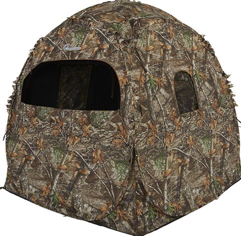 • Real tree edge Camo. Height: 66" footprint: 60"x60". waterproof ground blind that will comfortably hunt 2