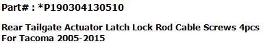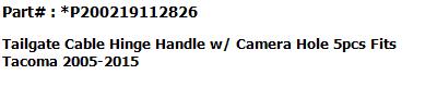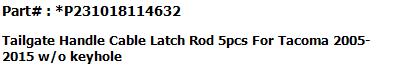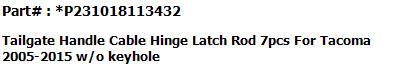 For Toyota Tacoma 2005-2015 #1 Tailgate Hinge LH #2 Tailgate Hinge RH #3 Tailgate-Lock Striker #4 Tailgate-Lock Striker #5 Tailgate Cable with Screws #6 Tailgate Cable with Screws |