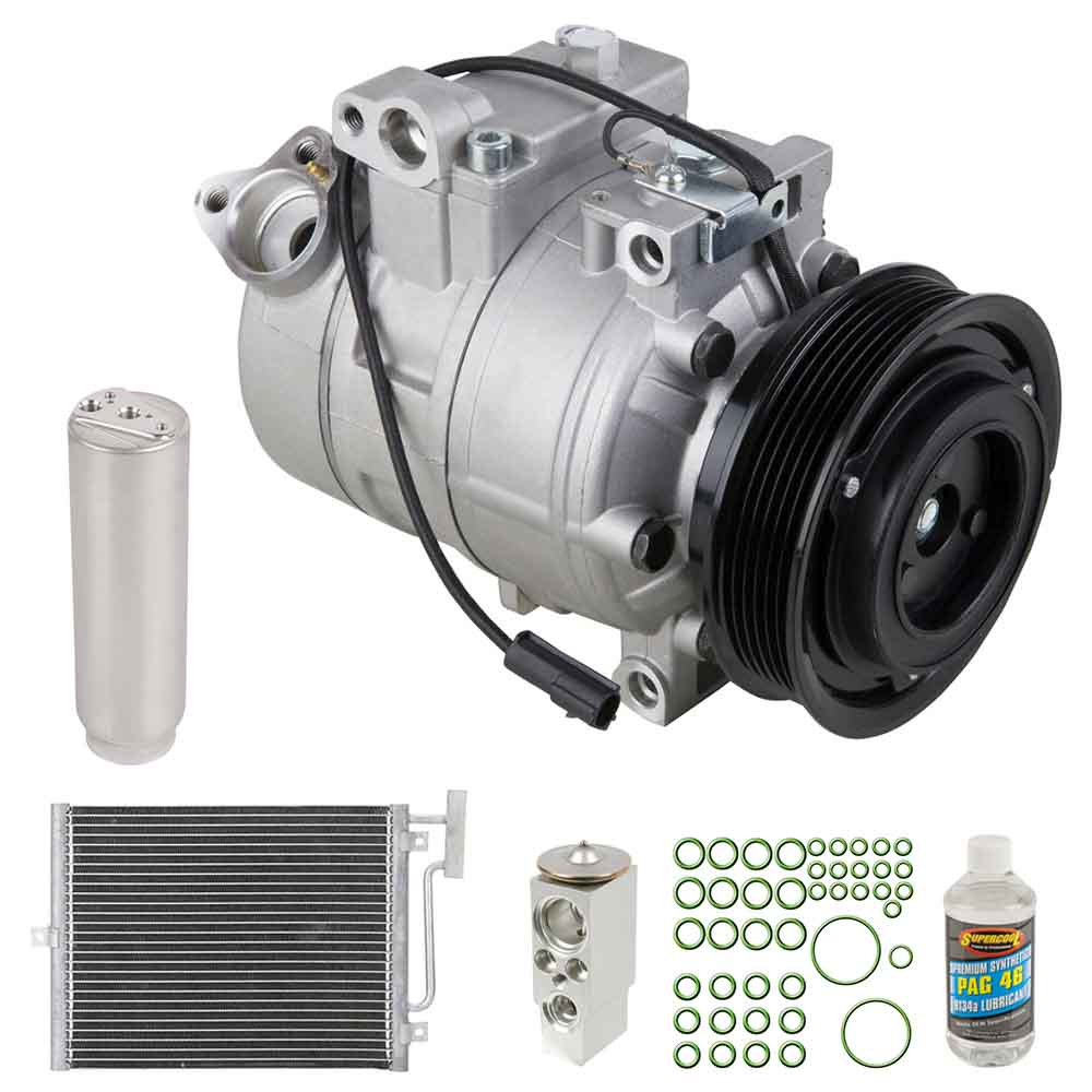 This 6 piece Complete AC Kit includes a brand new AC compressor, condenser, accumulator/drier, expansion device, a bottle of AC compressor oil and a pack of the correct o-rings for your system to prevent leaks. This kit is designed to include all of the right parts to make the repair process easier and save you money.