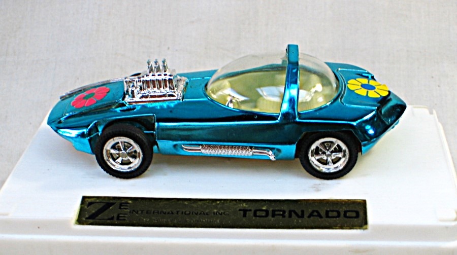 Vintage Zee Plastic Toy Car in Case - Tornado... A Roth style Bubble Hot Rod... Very good condition, clear plastic case has a crack in the top; please see photos for details... Made in Hong Kong in the 1970s by Zee International Toys... Looks like the "Silhouette" by Hot Wheels...