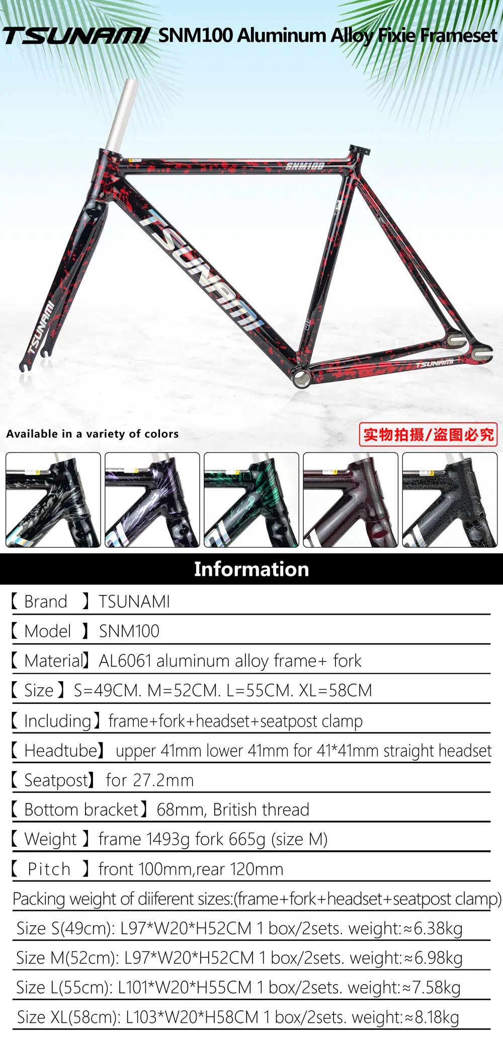 2.Model/Name:SNM100 Aluminum Alloy Fixed Gear Bike Frameset