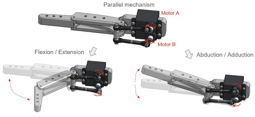 Aim of this project is to be able to explore humanoid hand possibilities on a real robot (and Reachy2 is the perfect candidate for that !) with moderate cost. => Wrist interface is designed for Reachy2's wrist (Orbita 3D), but it can be easily adapted to other robot's wrist...