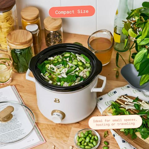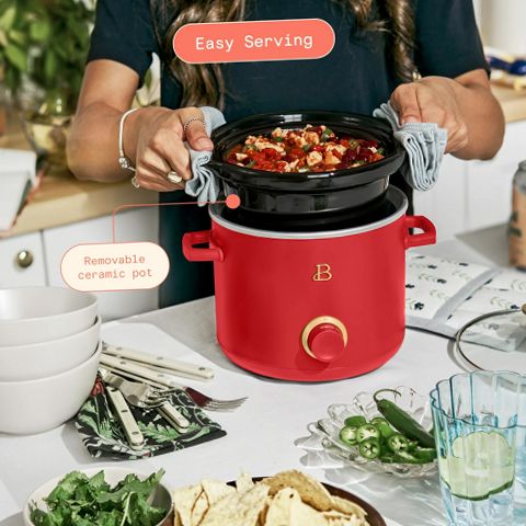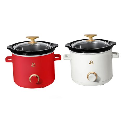 Beautiful 29139 2 Qt Manual Slow Cooker, 2-Pack, Tomato Red + White Icing
