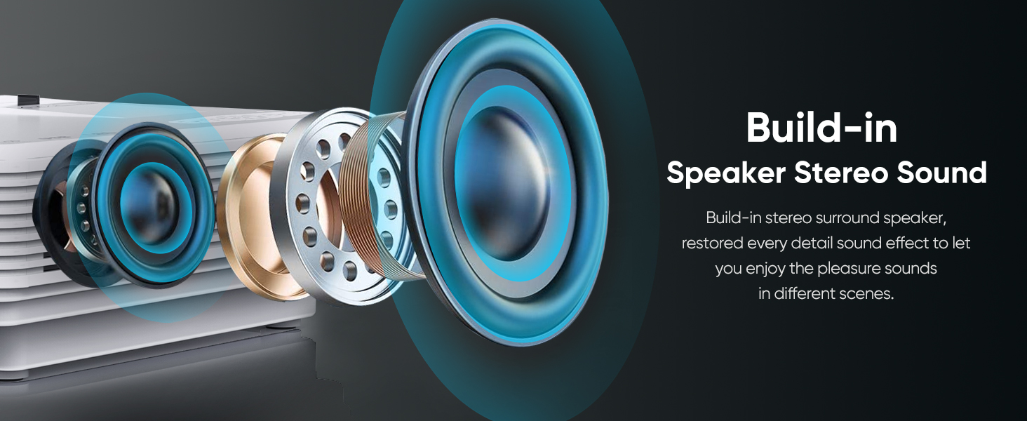 【With Upgraded Bi-Bluetooth 5.2, Enjoy HIFI Sound】Built-in powerful speaker, this portable projector provides HIFI sound effect while watching movie. The BLUETOOTH function is essential to connect to the external speaker or headphone wirelessly, also you can connect your Phone via Bluetooth to use the projector as a speaker. Just enlarge your happiness with our Bluetooth projector and enjoy an immersive sound quality experience! (Note: Bluetooth does NOT support to share screen with smartphones)