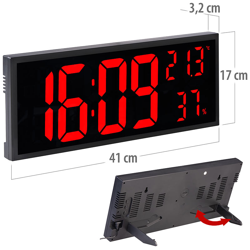 Auch ideal als Tischuhr: Klappen Sie einfach die integrierten Ständer auf der Rückseite aus und schon platzieren Sie Ihre Uhr auch auf Ihrem Schreibtisch, Nachttisch oder der Kommode.