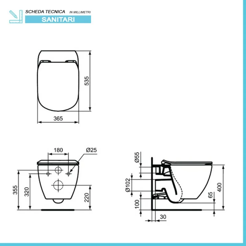 Sanitari Ideal Standard Tesi sospesi Rimless AquaBlade copriwater originale