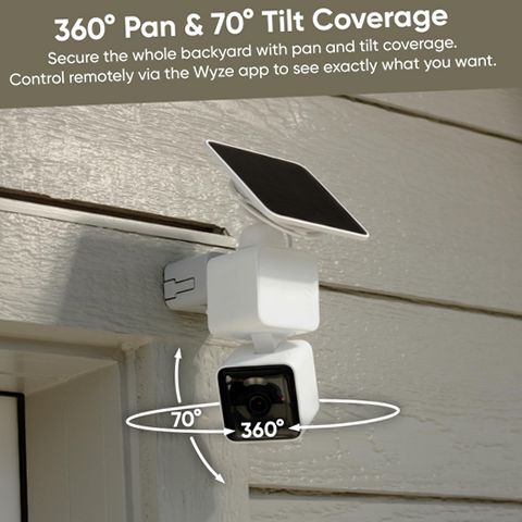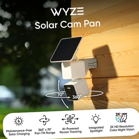 [The Wyze Solar Cam Pan is an evolutionary solar-powered, wire-free camera with an integrated solar panel, offering a maintenance-free 'install once and run forever' experience for outdoor home video surveillance.]