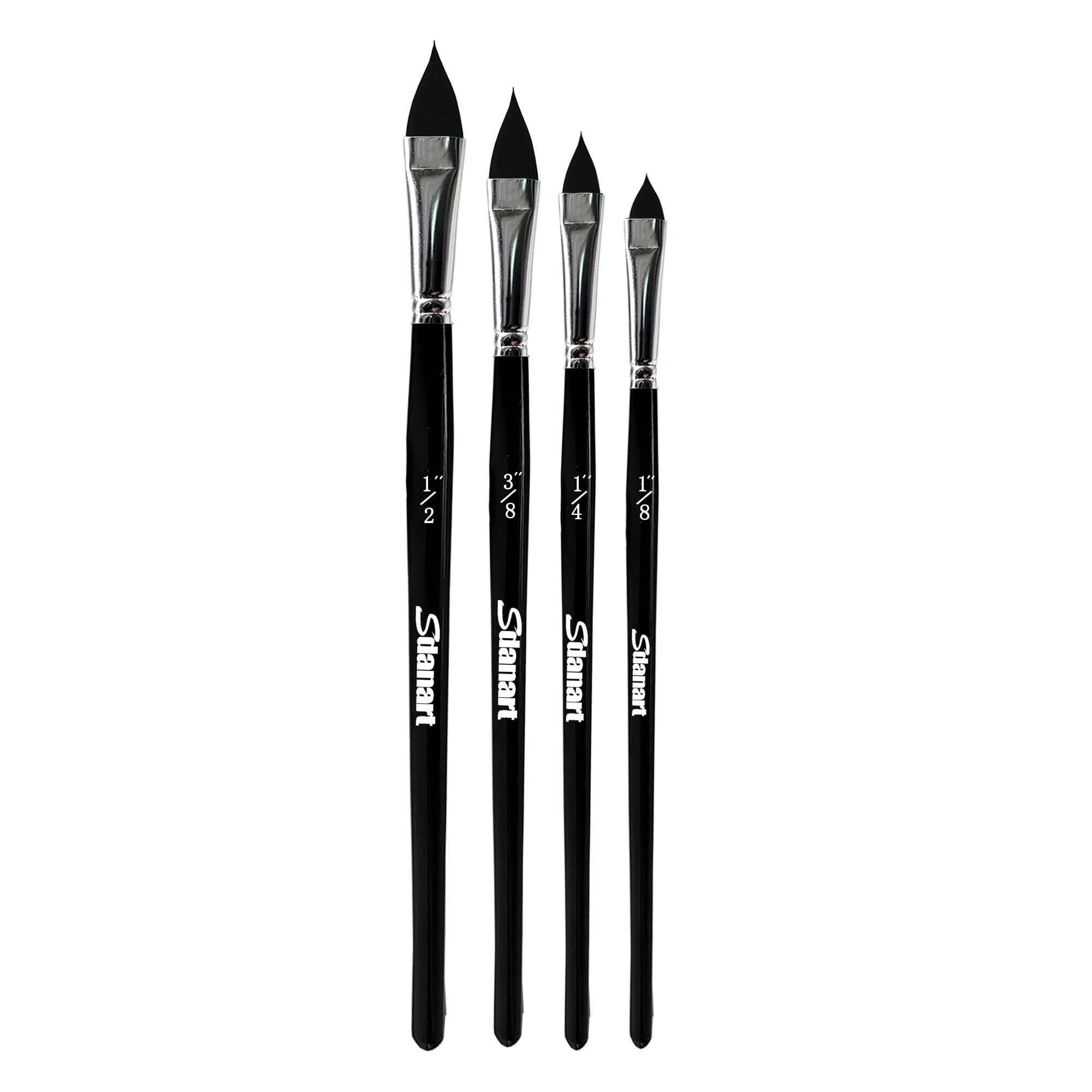 Cat's Tongue Brush Set: Cat's tongue paintbrush set includes 4 models of 1/8“, 1/4”, 3/8“ and 1/2” brushes to accurately draw large petals, leaves, stems, teardrops, droplets, stars, moons, fairy crowns, marbling, and swirls Oval Taper Design: Unique oval taper brush head design, each brush bristle is carefully chosen, using a unique process, so that the brush blade gradually bends and tilts to both sides, the whole process is handmade by experienced senior craftsmen, suitable for fine and large painting, the brush strokes are continuous and smooth and natural, to meet the needs of a variety of painting techniques, and directly improve your painting level Soft and Elastic Bristles, Excellence Water Retention: The Sdanart paint brush has excellent liquid holding abilities, it is easy to load more pigment, the pigment in the soft and elastic bristles can be adsorbed in a lasting flow, the brush strokes can be easily and evenly complete the color application, excellent elasticity so that the brush can be rebounded, and always maintain the shape, to achieve the effect of natural squirrel hair painting Multi-Purpose: Designed for professional painters and beginners, the brushes are not only suitable for watercolor art, but also meet the needs of gouache, acrylics, animation, illustration, ink, body, face, and art special effects, so that you can easily paint professional and perfect results Alias:Cats tongue watercolor brush,cat Tongue paint brushes,oval wash watercolor Brushes,cat tongue paintbrush,cat tongue paintbrushes,cat tongue paint brush,Oval floral petal watercolor brush
