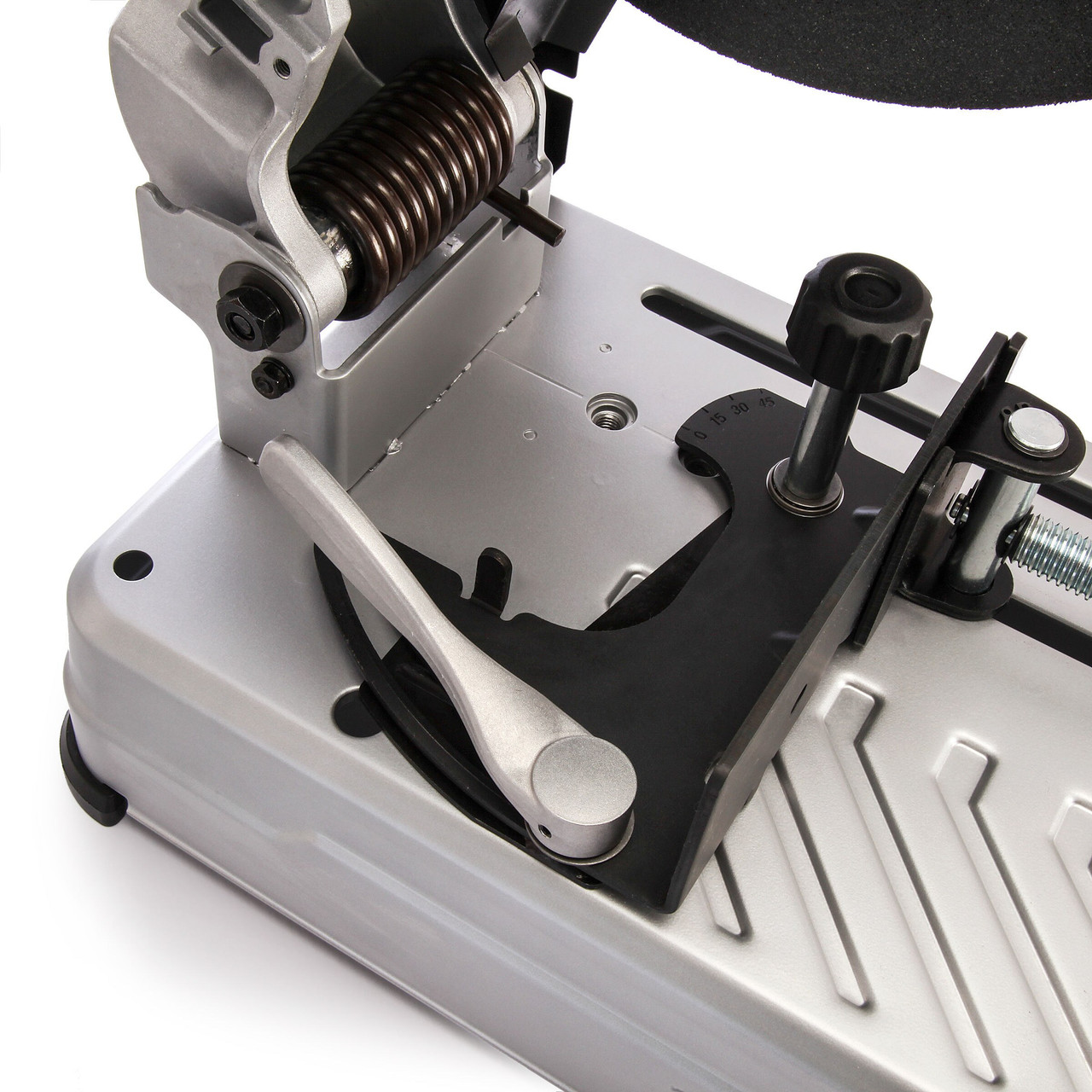 Model LW1400 is a 355mm (14") Portable Cut-off Saw and the successor to the 2414EN. The LW1400 is sold in 2 voltages, 110V and 240V. The 110V has a 1650W motor and the 240V has a 2200W motor. Both versions have a no-load speed up to 3800rpm. A toolless, quick release vice clamp makes for fast changes of length and angle of cut. Due to the design and position of the carry handle, it is relatively easy to transport around the jobsite. Replacement of abrasive wheel and adjustment of guide plate can be done without any tools.